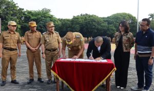 Penandatanganan kesepakatan ini dilakukan dalam apel pagi yang dipimpin langsung Wali Kota Bekasi, Tri Adhianto, Senin (15/9).