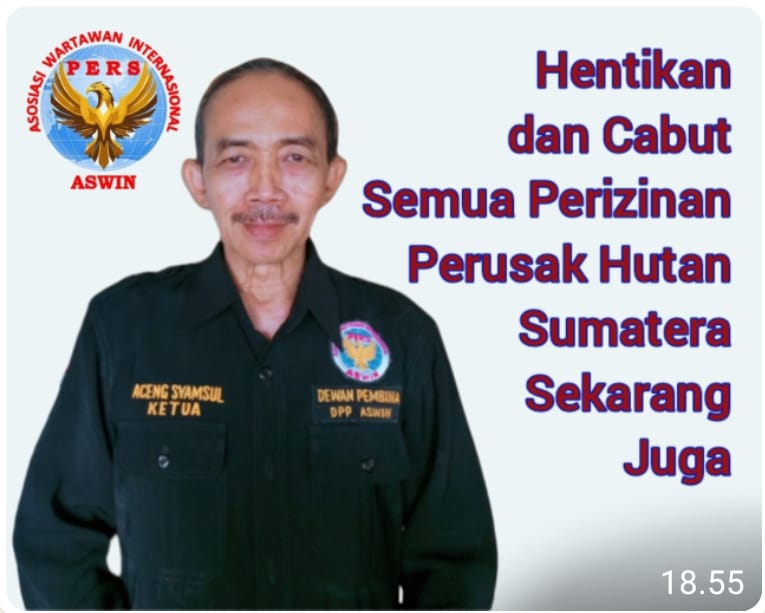 “Hentikan dan Cabut Semua Perizinan Perusak Hutan Sumatera Sekarang Juga”, tegas Aceng Syamsul Hadie, S.Sos. MM selaku Ketua Dewan Pembina DPP ASWIN (Asosiasi Wartawan Internasional).