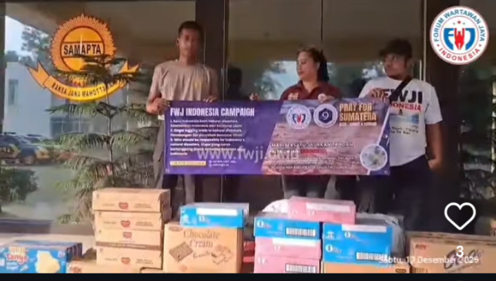 NMN | Kota Depok – Forum Wartawan Jaya Indonesia (FWJI) melakukan penyaluran bantuan langsung kepada korban bencana alam di Sumatera hari ini. FWJI berhasil mengirimkan bantuan makanan, sandang, dan kebutuhan pokok yang dibutuhkan oleh warga terdampak.
