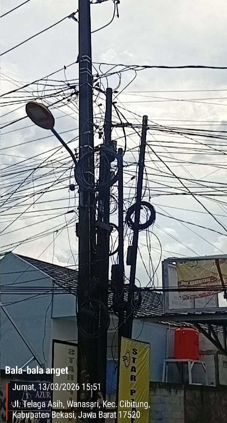 NMN | Cibitung,13 maret 2026 Maraknya kabel filter optik diwilayah kecamatan cibitung yang tidak tertata rapi membuat pandangan mata yang kurang enak dipandang,hal ini disampaikan oleh salah satu Organisasi yang berorientasi pada sosial kontrol yaitu Dansatgas PPBNI SATRIA BANTEN PAC CIBITUNG ‘Ade nyor’. “Beliau mengungkapkan mirisnya kabel yang semrawut di area kampung selang serta didesa muktiwari dan sekitarnya”. …saya berharap semua perusahaan provider telekomunikasi jaringan internet jangan hanya mengambil keuntungan tanpa melihat jaringan kabel fiber optik yang berantakan disepanjang jalan kp.selang,CBL dan sekitarnya,hal ini membuat prihatin para pengguna jalan,bisa mengakibatkan kemungkinan kecelakan dan merugikan atau memperburuk citra lingkungan..”